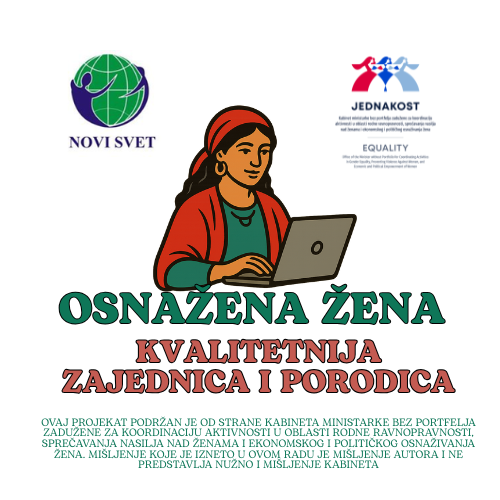 Centar Novi Svet realizuje projekt „Osnažena žena – kvalitetna zajednica i porodica“, uz podršku Ministarke bez portfelja zadužene za oblast rodne ravnopravnosti, sprečavanja nasilja nad ženama, ekonomskog i političkog osnaživanja žena.